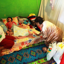 Tak hanya itu, masih di hari yang sama namun di lokasi yang berbeda, setelah kegiatan Seva di Kantor Kecamatan usai, para sevadal juga melaksanakan Seva kepada adik kita, Hania. Perlengkapan sehari-hari seperti popok, MCK, susu, snack, vitamin, buah, dll didistribusikan langsung ke kediaman Hania yang juga menderita tunaganda.
