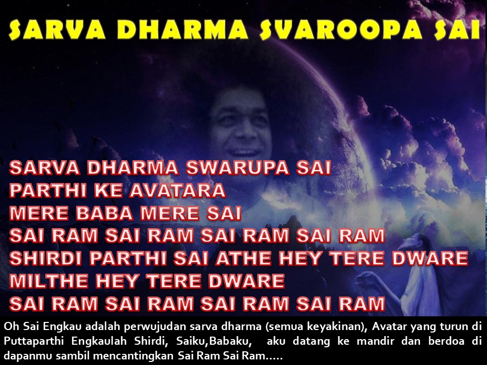 Semoga Sai Avatar selalu menuntun kita menajalani kehidupan ini, Kemulian bagi Beliau : Sarva Dharma Svaroopa Sai