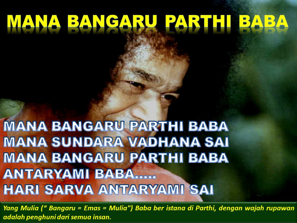 Sairam, Semoga selalu dibibing Bhagawan menjadi Bangaru seperti harapan Bhagawan diatas, mari menyanyikan : Mana Bangaru Parthi Baba