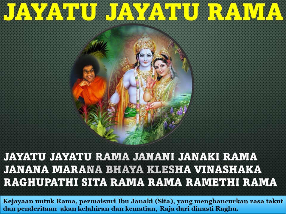 Semoga kita semua dibebaskan dari penderitaan di dunia ini seperti teladdan Sri Rama, oleh karenya mari menyanyikan kemulian Beliau : Jayatu Jayatu Rama