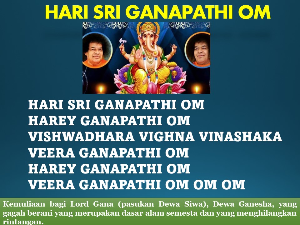 Mengawali bulan ini semgo semua rinntangan dilenyapkan oleh Sai Ganesha, mari menyanyikan: Hari Sri Ganapathi Om