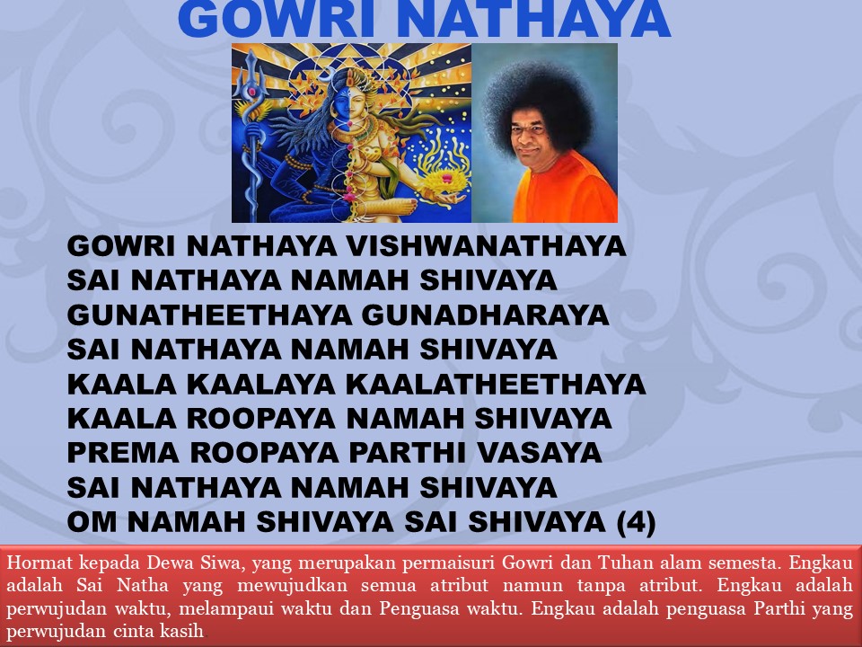 Dan tetap nersemangat melantunkan nama Tuhan, mari menyanyikan nama Beliau: Gowri Nathaya
