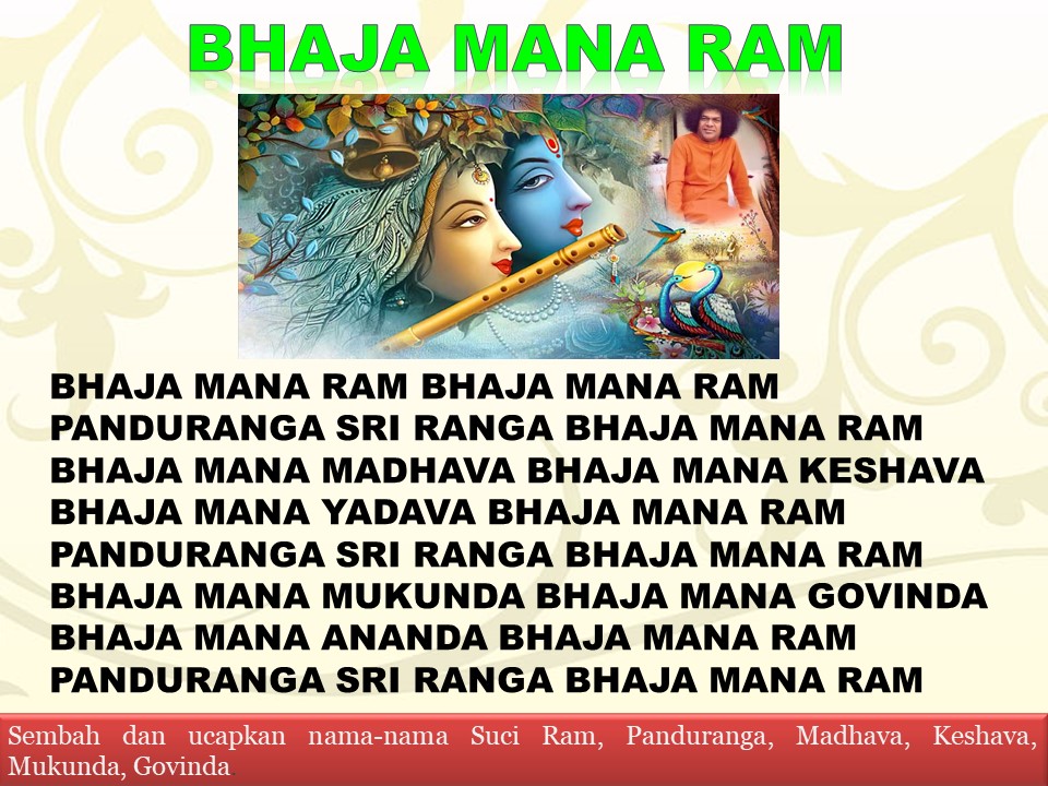 Seperti pada Bhajan ini mengingatkan kita untuk menyanyikan dan mengulang nama Tuhan, semoga selalu diberkati : Bhaja Mana Rama
