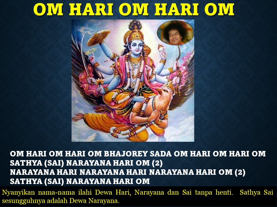 dan mari menyanyikan Nama Hari, Sathya Sai seperti makna pada lagu : Om Hari Om Hari Om