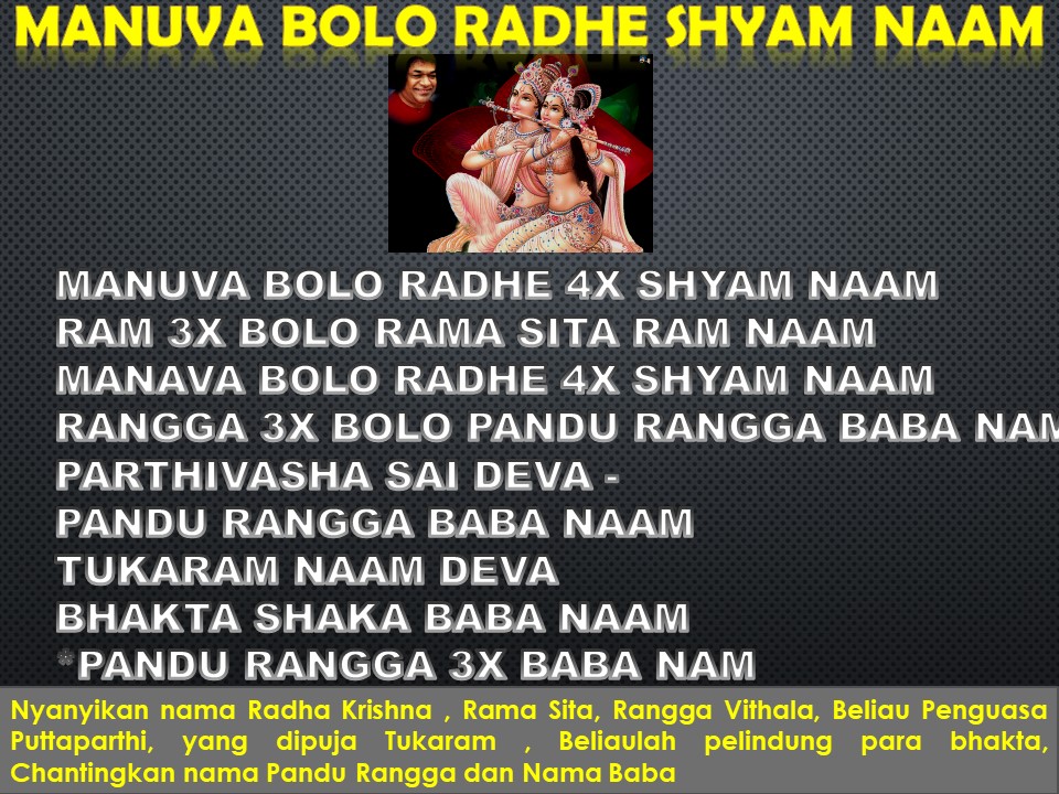 Semoga semua damai dan terberkati, mari menyanyikan nama Beliau : Manuva Bolo Radhe