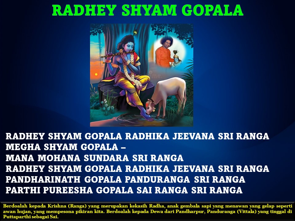 dan mari menyanyikan kemuliaan Nama Lord Krishna yang memberikan kebahagiaan bagi kita semua: Radhey Shyama Gopala