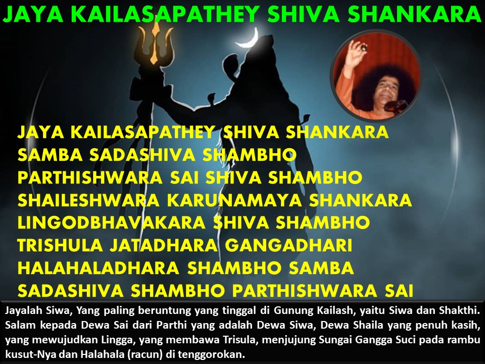 Kailasa adalah suka cita dan kebahagiaanmu sendiri. Ini menandakan bahwa Dewa Shiva tinggal di Kailasa penuh kegembiraan hati. Jika engkau mengembangkan suka cita dan kegembiraan di dalam pikiranmu maka Shiva tinggal di dalam dirimu. Bagaimana engkau bisa mendapatkan suka cita ini? Hal ini datang ketika engkau mengembangkan kemurnian, keteguhan hati, dan kesucian. Kemudian hatimu akan menjadi diliputi dengan kedamaian serta kebahagiaan dan hatimu sejatinya adalah Kailasa tempat Dewa Shiva! Shiva akan tinggal di dalam relung hatimu dalam tempat suci yaitu badanmu. (Divine Discourse, Feb 17, 1985)