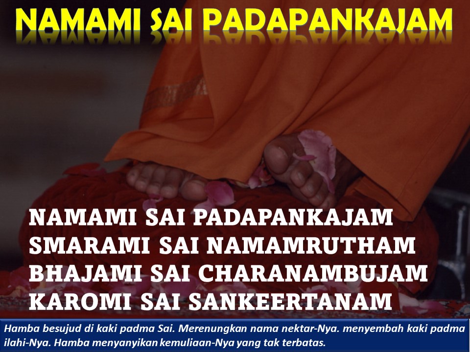 Dengan senantiasa berpegang di Kaki Beliau semoga kita senantiasa diselamatkan. Mari menynyikan : Namami Sai Padapankajam