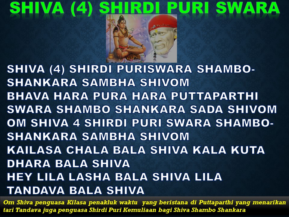 Semoga kita selalu dapat memanfaatkan waktu yang diberikan Bhagawan untuk kebaikan. Mari menyanyikan kemulian Shiva Sang Penguasa Waktu: Shiva (4) Shirdi Puriswara