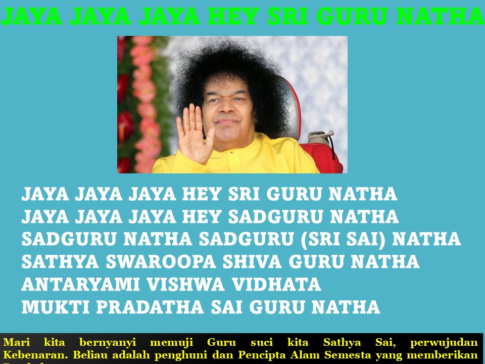 Semoga Sad Guru Bhagawan senantiasa terus membibing hidup kita, mari menyanyikan kemulian Sad Guru dengan lagu : Jaya Jaya Jaya Hey Sri Guru Natha