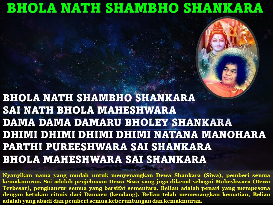 Kemuliaan bagi Shiva senantiasa dalam berkat Beliau, mari kita menyanyikan kemulianNya: Bhola Nath Shambho Shankara