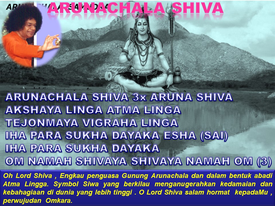 Semoga kita semua diberkati pembebasan dalam kehidupan ini, dan mari menyanyikan Beliau yang memberikan pembebasan Sai Shiva seperti pada bhajan: Arunachala Shiva
