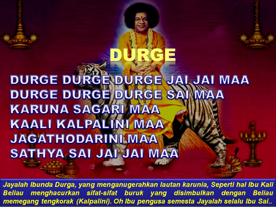 Semoga Ibu DewiDurga senantiasa memberkati kita dengan damai sukacita dan kebahagiaan, mari menyanyikan kemulian Beliau dengan lagu: “Durge Durge Durge Jai Jai Maa”