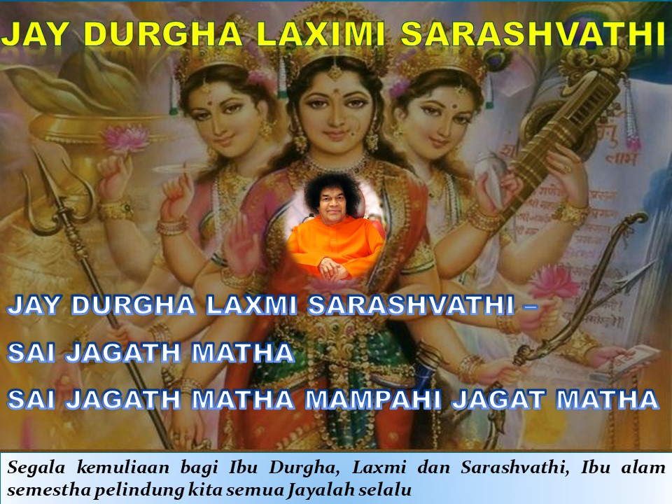 Semoga Sai Matha selalu meleyapkan kegelapan dalam diri kita, mari menyanyikan kemuliaan Beliau : Jay Durga Laxmi Saraswathi