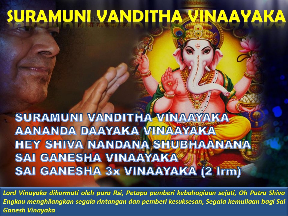 Dalam Bhajan ini Ganesha disebutkan ANANDA DAYAKA (Pemberi Kebahagian) dan Bhagawan bersabda: