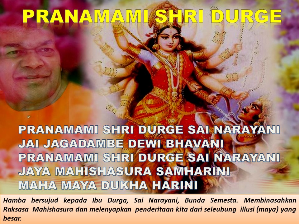 Dalam Bhajan Dewi ini Durga diseutkan melenyapkan penderitaan (Dukha Harini). Mengenai penderitaan Bhagawan bersabda: