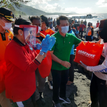 Sebanyak 167 paket sembako (yang terdiri dari beras 5kg, 10 mie instan, gula, minyak goreng, dan kue kering), masker sebanyak 1.800 biji, dibagikan kepada masyarakat sekitar khusunya kepada masyarakat yang bekerja sebagai pendorong perahu disekitar pelabuhan. Tak hanya paket sembako, paket pola hidup bersih dan sehat yang terdiri dari 3 biji masker dan 2 sabun batang juga dibagikan sebanyak 167 paket. Fogging, bersih-bersih pantai, dan pengobatan gratis juga dilakukan dalam aksi sosial ini.