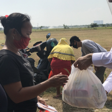 Sebanyak 500 paket sembako dan masker telah dibagikan di beberapa lokasi dan hari yang berbeda. Dimulai tepat pada hari Guru Purnima yaitu pada tgl 5 Juli dibagikan sebanyak 300 paket sembako di daerah Husein sastra Negara Rawa Bokor, kemudian disusul pada tgl 9 Juli sebanyak 125 paket di distribusikan di daerah Inspeksi kali duri terusan Bandengan kolong tol dan tgl 11 Juli sebanyak 75 paket dibagikan di daerah Pluit karang karya kolong Tol. Ada pun paket sembako yang dibagikan berisi Beras, gula, kacang hijau, minyak , tepung terigu, biscuit , susu sachet, roti serta nasi goreng dan buah pisang.