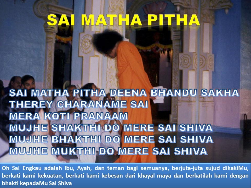 Beliau Ibu, Ayah, Guru dan Sahabat Ilahi mari manyanyikan kemuliaan Beliau: Sai Matha Pitha