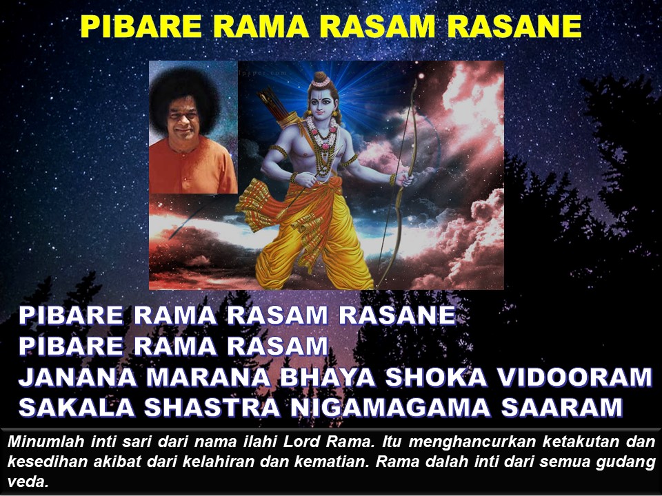 Mari bersama Bhagawan menyanyikan manisnya nama Rama untuk menyebrangi lautan keidupan ini : Pibare Rama Rasam