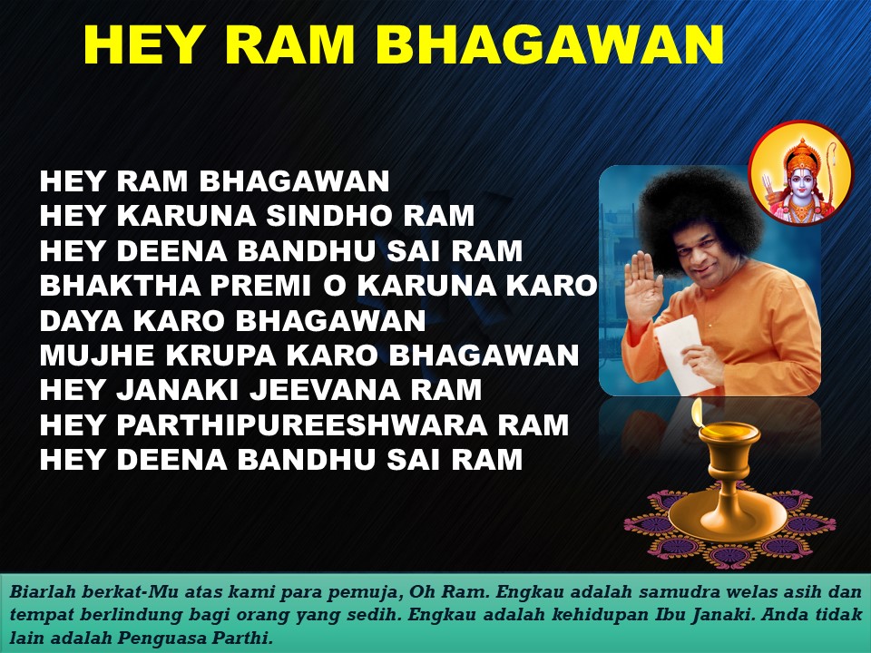 Bhagawan adalah teman sejati kita yang mendampingi kemanapun kita meangkah, mari menyanyikan kemuliaan Beliau: Hey Ram Bhagawan