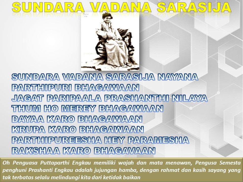 Semoga Kasih kita terus berkembang dan Kasih Bhagawan untuk kita juga berkembang mari menyanyikan : Sundara Vadana