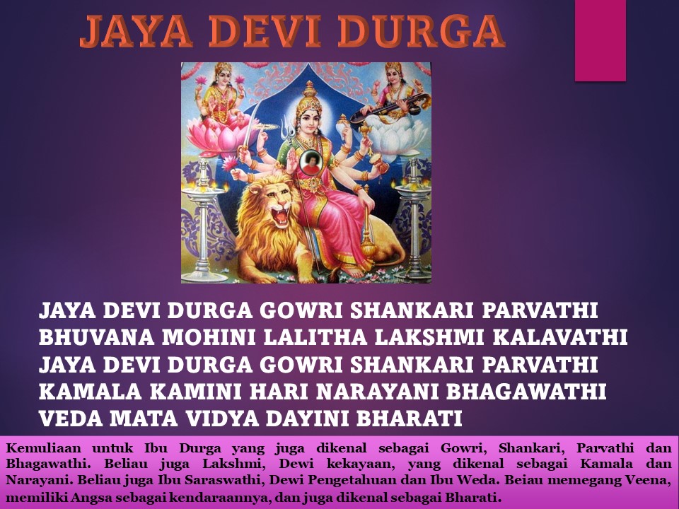 Semoga berkat berlimpah selalu mengalir untuk Ibu tercinta. Mari menyanyikan: Jaya Dewi Durga