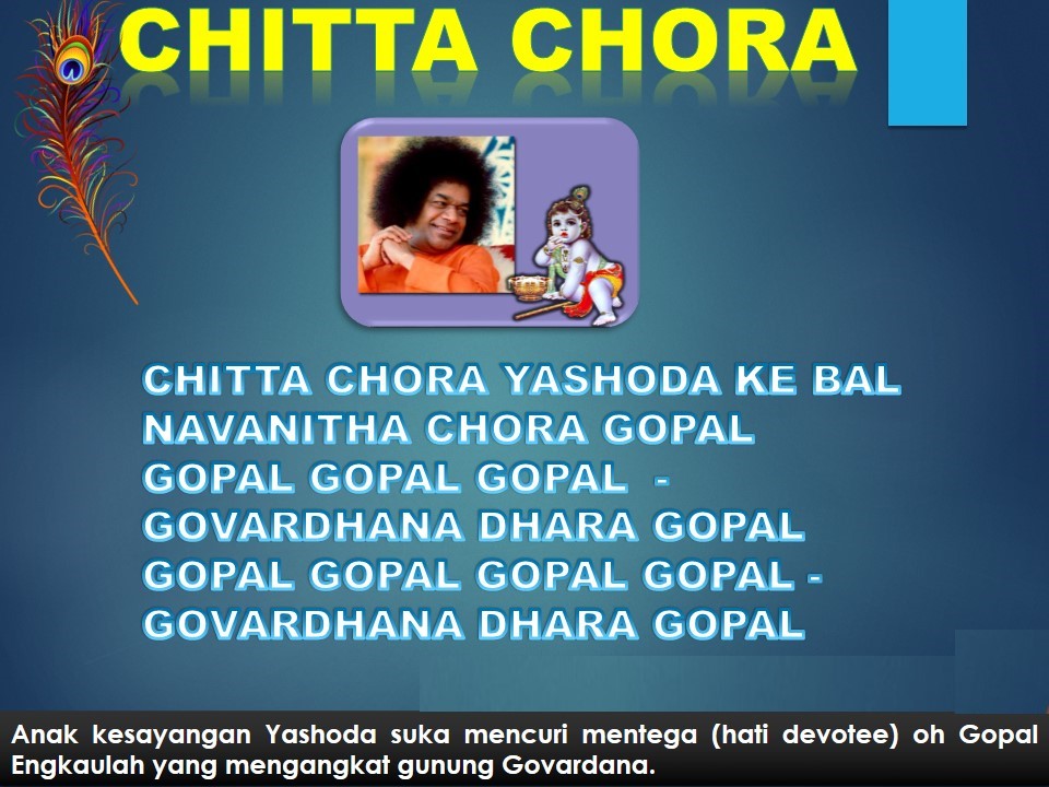 Semoga Sai Krishna yang telah mencuri hati kita mecurahkan Rahmatnya pada kita, bersama bhagawan mari menyanyikan : Chittachora