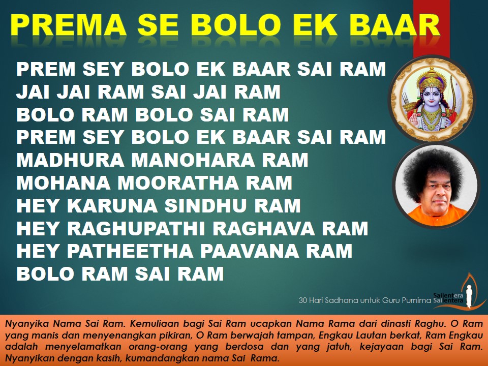 Mari menyanyikan manisnya nama Rama dengan penuh kasih seperti makna pada lagu ini: Prema Se Bolo Ek Bar Sairam