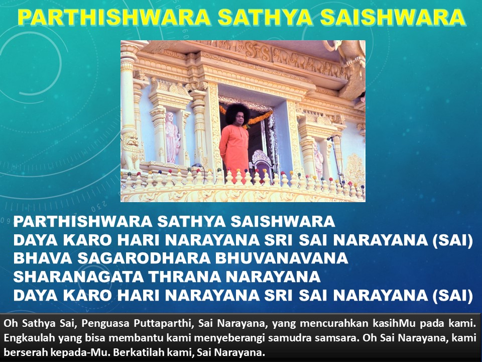 Semoga kitab bisa memasrahkan hidup kita pada Bhagawan sebagai wujud pengabdian kita. Mari kita menyanyikan :Parthishwara Sathya Saishwara