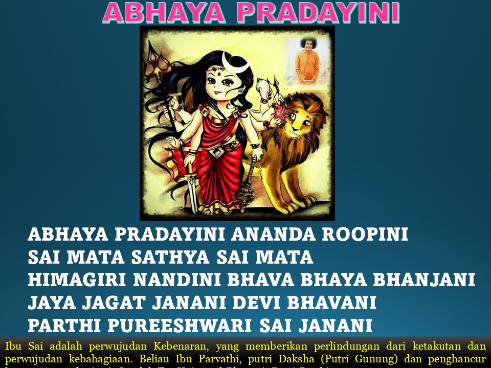 Dan semoga kita semua diberkati Kebahgiaan, mari menyanyikan : Abhaya Pradayini Ananda Roopini