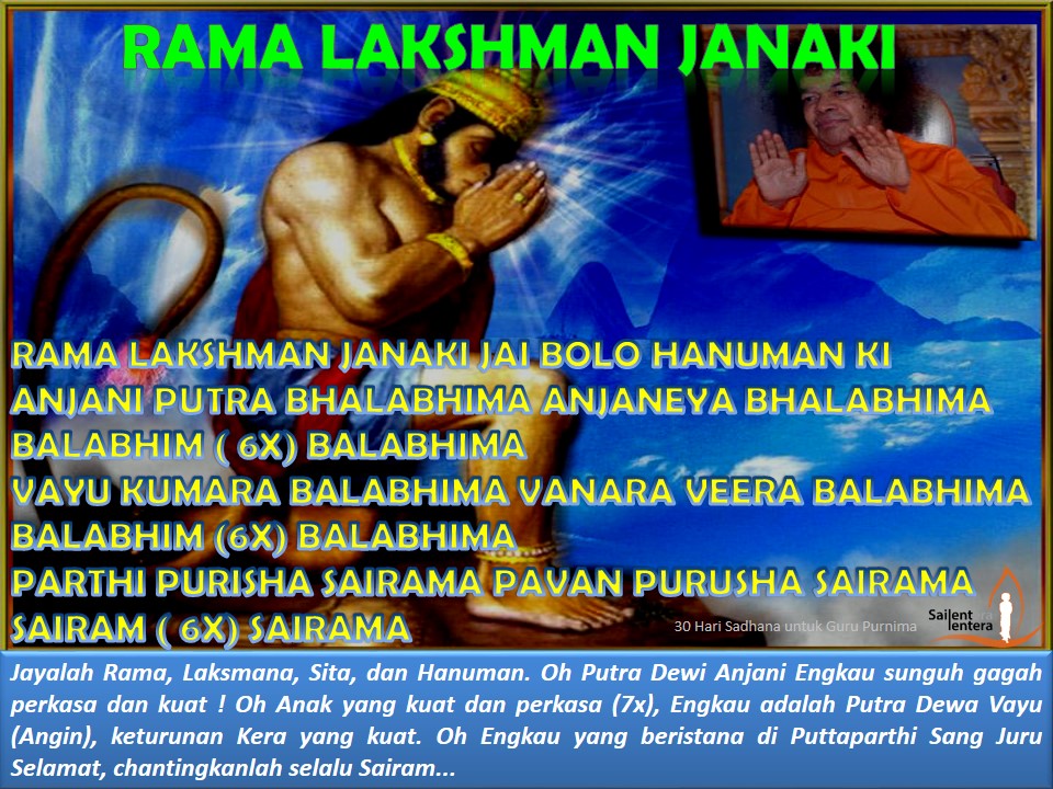 Tetap semngat mejadi sevadal seperti Hanuman. Mari menyanyikan kemuliaaNya: Rama Laksman Janaki