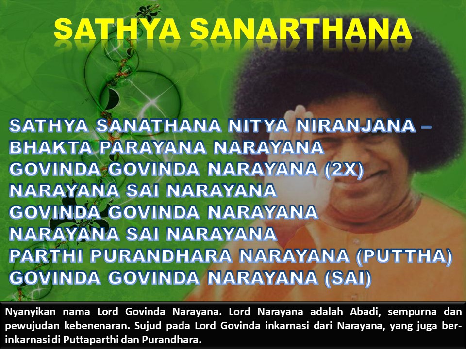 Semoga rahmat Narayana selalu menyertai kita, mari menyanyikan kemuliaan Sai Narayana: Sathya Sanarthana