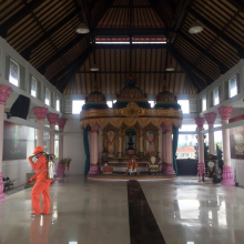 Aksi penyemprotan disinfectan untuk memastikan area Sai Center steril dari kuman, bakteri dan terutama Virus Covid-19 juga dilakukan oleh para sevadal dari SSG Gianyar Bali. Mereka melaksanakannya pada hari Senin, 23 Maret 2020. Penyemprotan ini dilakukan di area: altar, dapur, kamar mandi, gudang dan tempat-tempat yang sering digunakan bhakta hingga sampai area parkir. Dengan aksi ini berharap Center SSG Gianyar setidaknya saat ini lebih steril dan nyaman.