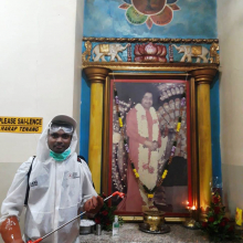 Virus Covid-19 yang belakangan ini cukup meresahkan Indonesia bahkan dunia mengingatkan kita untuk menerapkan hidup bersih dan sehat serta menjaga lingkungan tetap steril. Dan dalam upaya pencegahan serta memastikan area Sai Center bersih dari virus, kuman dan bakteri terutama Virus Covid-19,  SSG Jakarta tidak tinggal diam dibantu oleh PMI Jakarta, SYA, dan Sevadal pada hari Kamis 19 Maret 2020 malam mereka melaksankan penyemprotan cairan disinfectan ke semua ruangan Sai Center. Mulai dari area depan Center, Altar, Perpustakaan, Ruang Sekretariat, Tangga, Toilet, Dapur dan semuanya tidak luput dari penyemprotan ini. Hal serupa juga dilakukan oleh SSG Tabanan Bali dimana pada tanggal 21 Maret melakukan penyemprotan disinfectan ke area Sai Center dan bahkan hingga ke celah-celah tempat kuman, bakteri atau virus bersarang. Bagi sebagian besar bhakta, Sai Center sudah dianggap rumah kedua mereka dan Bhagawan berkata kebersihan adalah bagian dari Sadhana. Semoga aksi ini menginspirasi Sai Center lainya terutama menjaga kebersihan  sehingga para bhakta nantinya yang datang ke Sai Center merasa lebih nyaman. Jay Sai Ram.